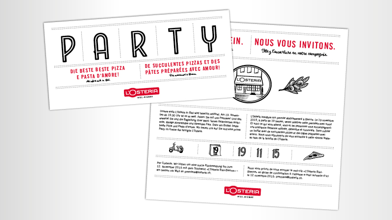 Als größte private Arbeitgeberin der Schweiz mit rd. 85.000 Mitarbeiter/-innen steht die MIGROS neben Supermärken, Fachmärkten, Tankstellen und vielen weiteren Unternehmen seit vielen Jahren auch für erfolgreiche Restaurant- und Gastronmiekonzepte. Die Genossenschaft MIGROS Aare ist seit diesem Jahr offizielle Lizenznehmerin der L’Osteria Pizza e Pasta für die Schweiz. Geplant sind zahlreiche Standorte. Für die Markteinführung der Marke L’Osteria holte MIGROS die Berater von DA CAPO an Bord, um die Bereiche Verkaufsförderung/Promotion, Markeninszenierung, Presse- und Öffentlichkeitsarbeit sowie die Inszenierung des ersten Grand Openings in Biel-Bienne mit Erfahrung und Kreativität zu unterstützen. Die Entwicklung eines XXL-Pizzaboxportals als Eye-Catcher für die entwickelte, großangelegte Promotion-Aktion „PizzaPROMOdoro“, bei der sich Passanten auf einer L’Osteria-Vespa fotografieren lassen und diese auch gewinnen können, ist eine der vielen Ideen. Die Gesamt-Projektsteuerung für die Markteinführung der L’Osteria in der Schweiz liegt bei Batten & Company, München.