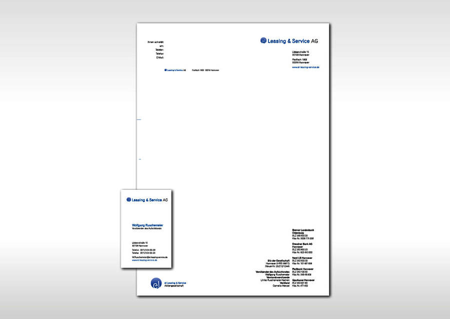 Die el Leasing & Service AG erhält als erster Unternehmensbereich Geschäftsausstattung und Informationsmedien im neuen Design. Es folgen Unterlagen für die el Inkasso GmbH und die el Factoring GmbH. Für die gemeinsame Präsentation der Unternehmen entstehen markenübergreifende Medien.